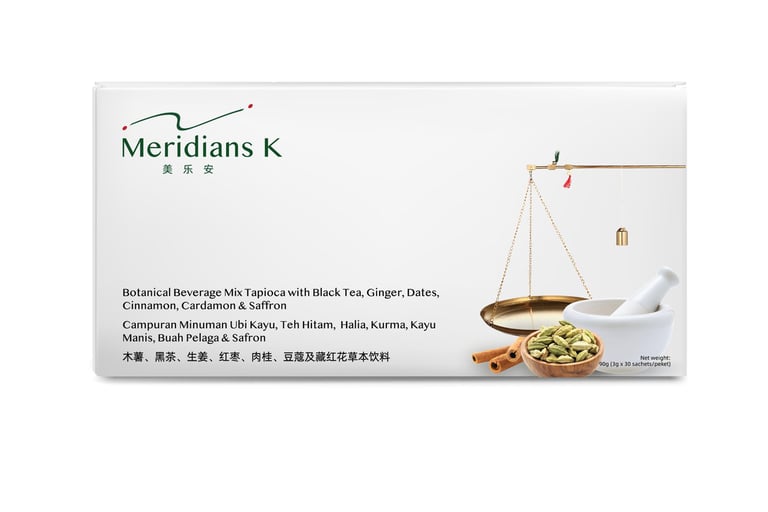 MERIDIANS K is not designed as medicine. It is originated from spices which always emphasises well-balanced nutrients and achieve a healthy body system.