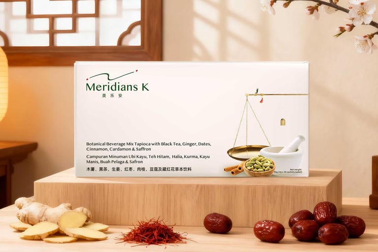 MERIDIANS K is not designed as medicine. It is originated from spices which always emphasises well-balanced nutrients and achieve a healthy body system.